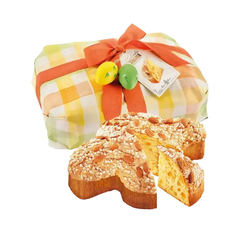Bei der handwerklichen Herstellung muss die Colomba kopfüber ausgekühlt werden, damit sie luftig und flaumig bleibt und nicht in sich zusammenfällt. Gekrönt wir die Colomba in der Regel mit einer Zuckerglasur und köstlichen Mandeln, während das Innere mit kandierter Orange verfeinert wird.