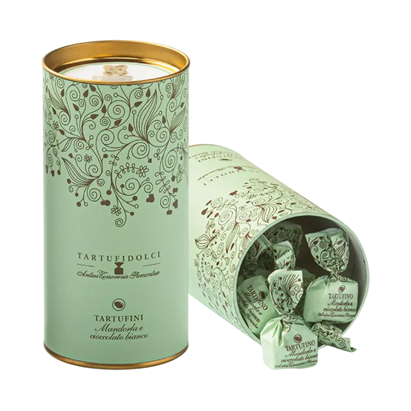Erlebe den besonderen Geschmack feinster Mandel-Tartufi Trüffelpralinen mit weißer Schokolade. Von Hand gefertigte, zartschmelzende Meisterwerke aus dem Piemont.