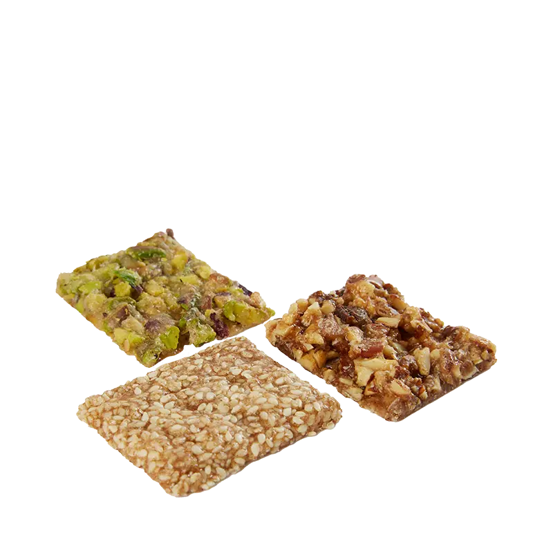 Feines Krokant Gebäck mit Pistazien, Mandeln & Sesam.